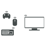 You can connect your gamepad, keyboard or mouse to your TV wirelessly (if these are wireless devices).